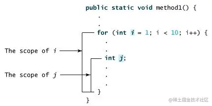 你可以在一个方法里,不同的非嵌套块中多次声明一个具有相同的名称局部变量,但你不能在嵌套块内两次声明局部变量。