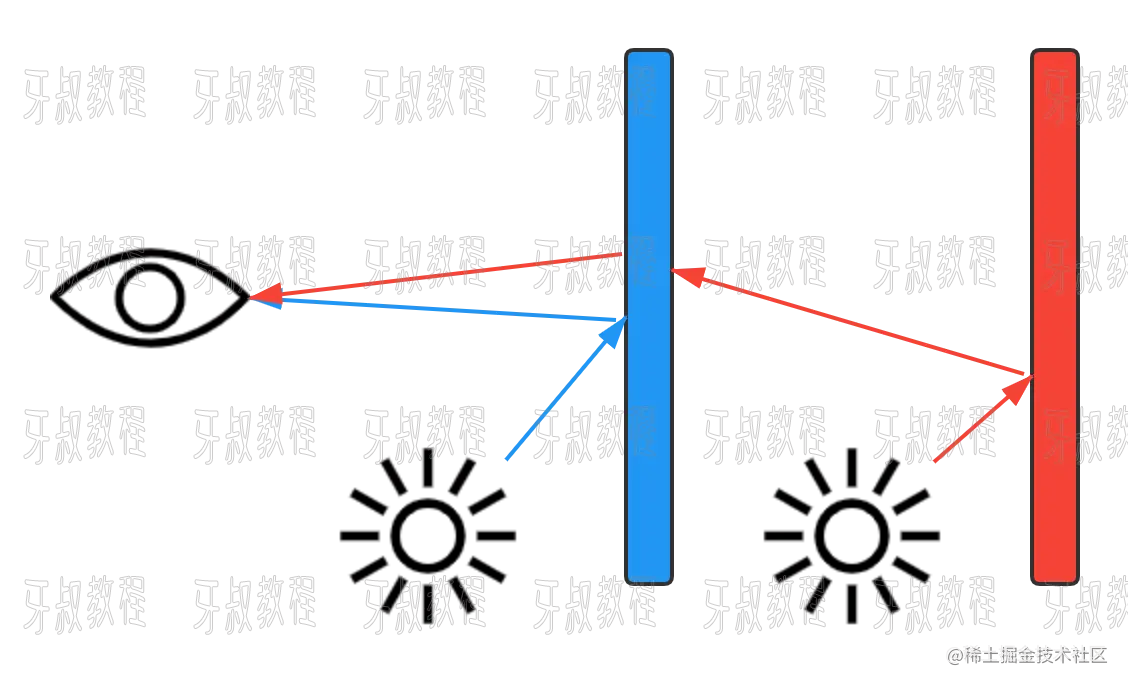 把颜色想象成为, 一个有颜色的玻璃, 且玻璃可以调节反射率,