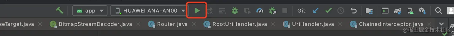 下面是一些吐槽的地方,相比较 Xcode 的 llvm 这一套编译系统,感觉 Android Studio 明显的编译时间会比较长(一个 App ),像我们的 App 每次编译都在 10 min 以上,简直让人难受到头疼。还有一个感到非常不适的是,你一个大大的运行键放在这里,竟然是打包安装,不带 Debug 功能。一般 android 同学都是通过 attatch 直接去进行 Debug。
