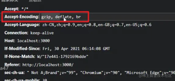 浏览器和服务器之间会使用主动协商机制,浏览器向服务器发送请求的时候,其请求标头中会含有Accept-Encoding字段,其中包含了客户端支持的压缩算法,以及各自的优先级,服务器则从中选择一种,使用该算法对响应的消息主体进行压缩,并且发送Content-Encoding首部来告知浏览器它选择了哪一种压缩算法。