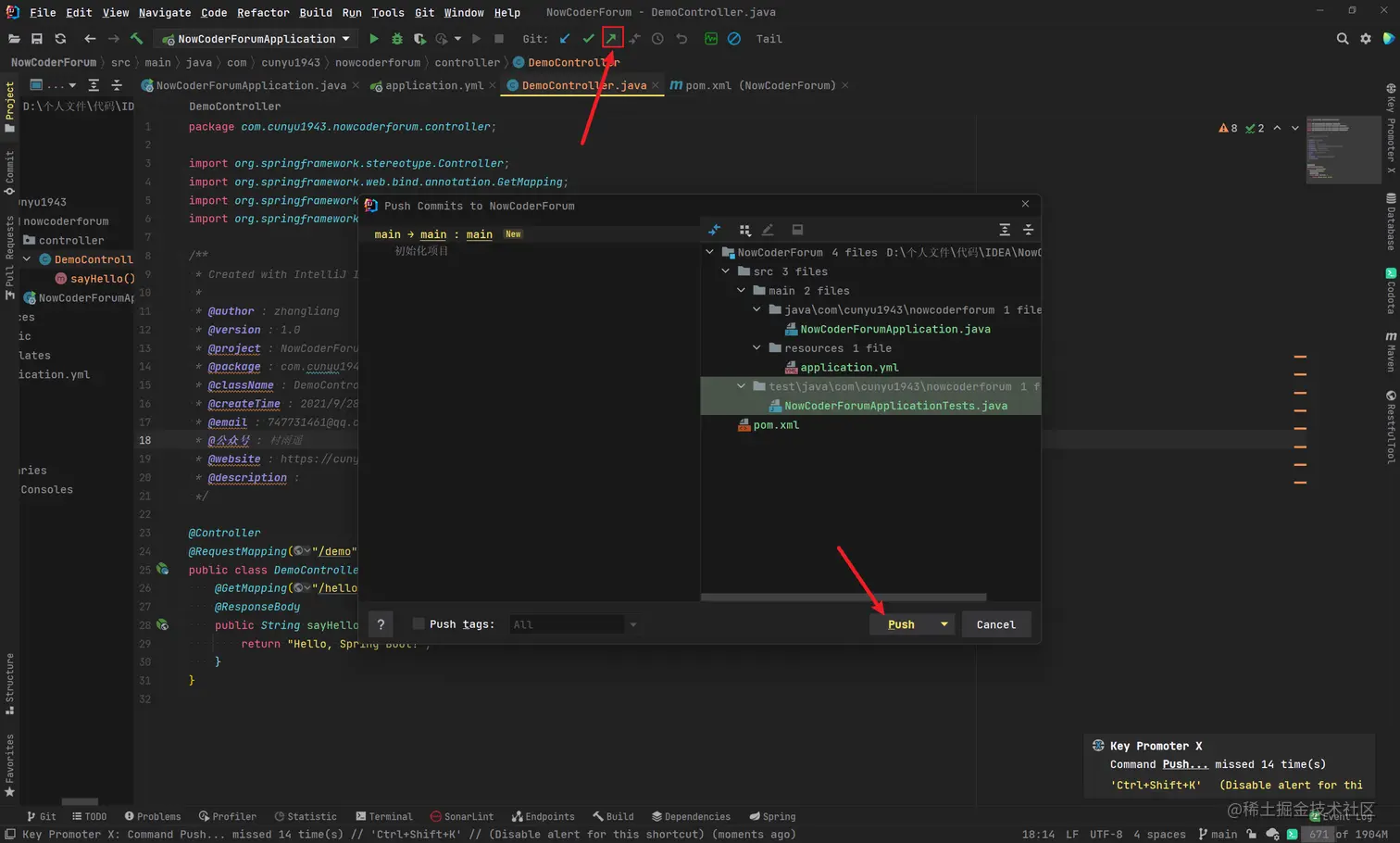 当我们的项目有所改动之后,如果我们想要将我们改动的内容推送到远程,可以通过如下过程来进行。