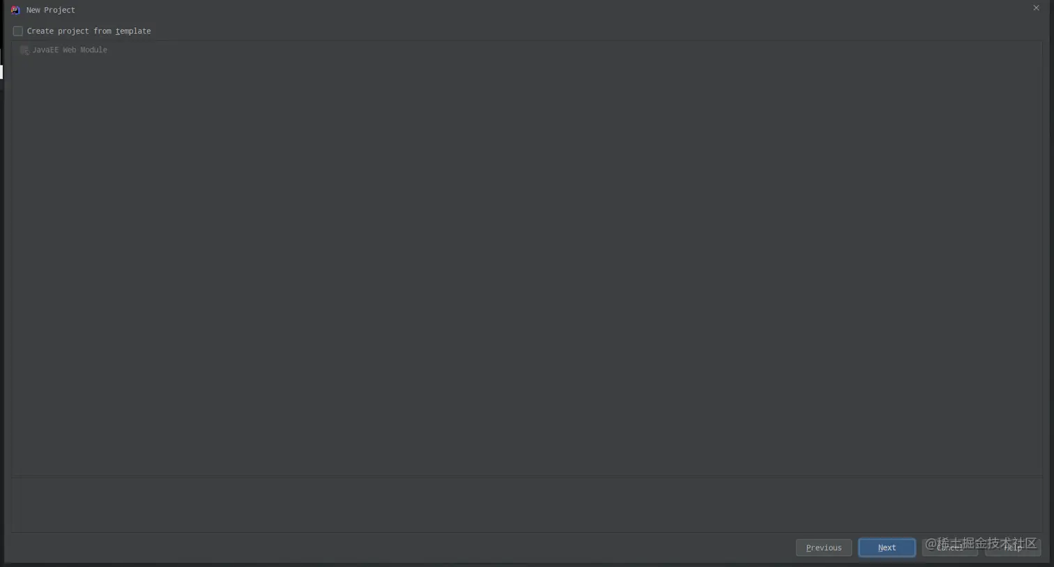 - 选择是否基于模板创建项目,默认我们不勾选,直接下一步,创建一个空项目;