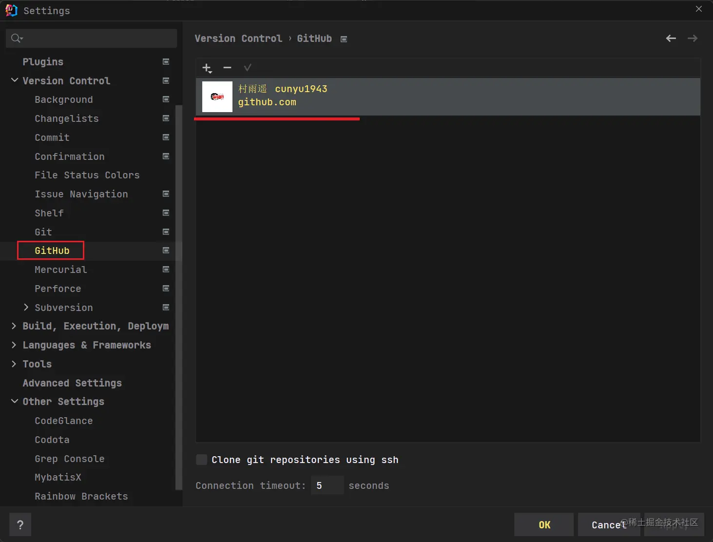 - 点击登录后,如果出现如下图中的界面,即显示你的 Github 账户头像和用户名,则说明此时登录成功;