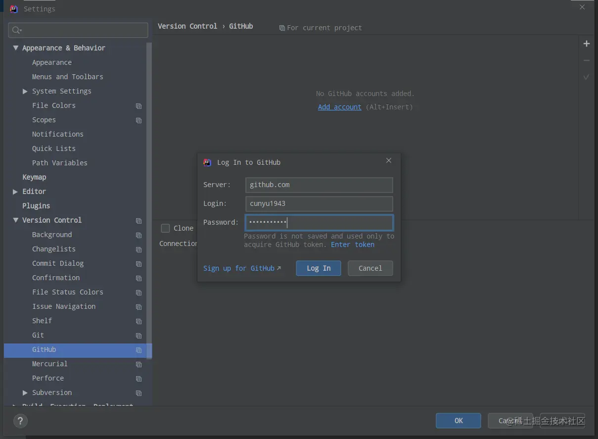 - 设置好 Git 的安装路径之后,我们就可以直接去登录 Github 了,在这里直接输入你的 Github 账户及密码即可;