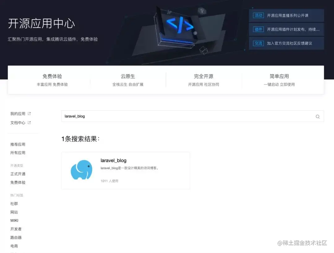 第一步:登录腾讯云开源应用中心(app.cloud.tencent.com/),搜索laravel…