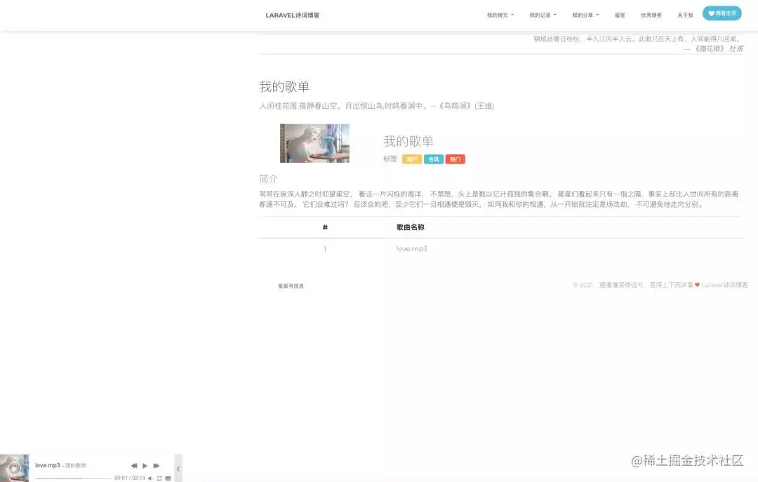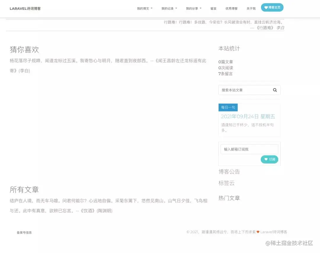 1、laravel_blog的界面非常优美,适用日常记录、诗词分享等等场景。