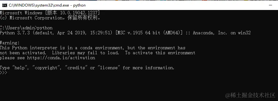 最后输入Python就可以检查出来我安装的版本号等信息。