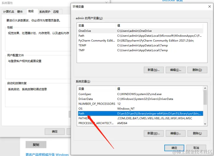 (3)点击环境变量。找到系统变量里面的Path,编辑它,将python解释器所在路径粘贴到最后面,再加个分号。