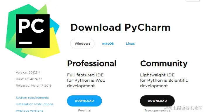 Professional 表示专业版,Community 是社区版,推荐安装社区版,因为是免费使用的。