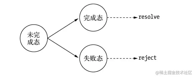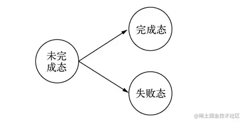 - Promise的状态只会出现从未完成态向完成态或失败态转化,不能逆反。完成态和失败态不能互相转化。