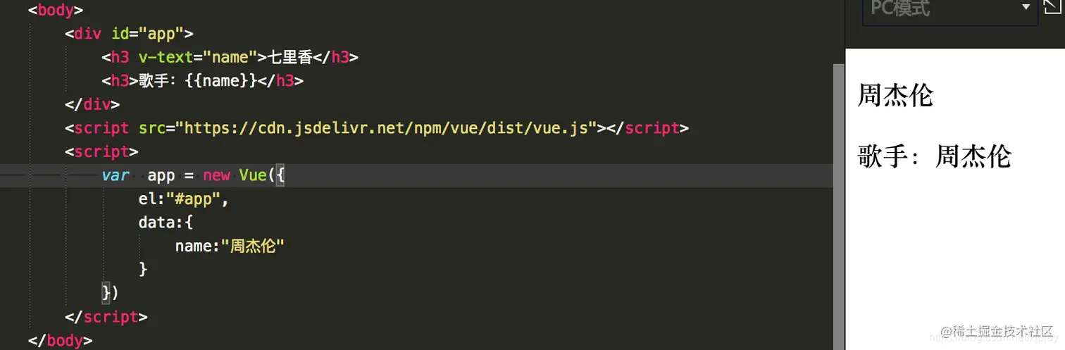 <h3 v-text="name"></h3>那么name的值哪里来呢?