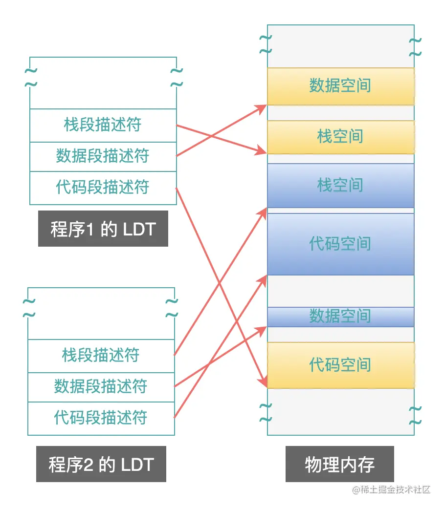 我们假设用户程序中有一个代码段,那么在这个程序的 LDT(局部描述符表)中,段描述的结构如下: