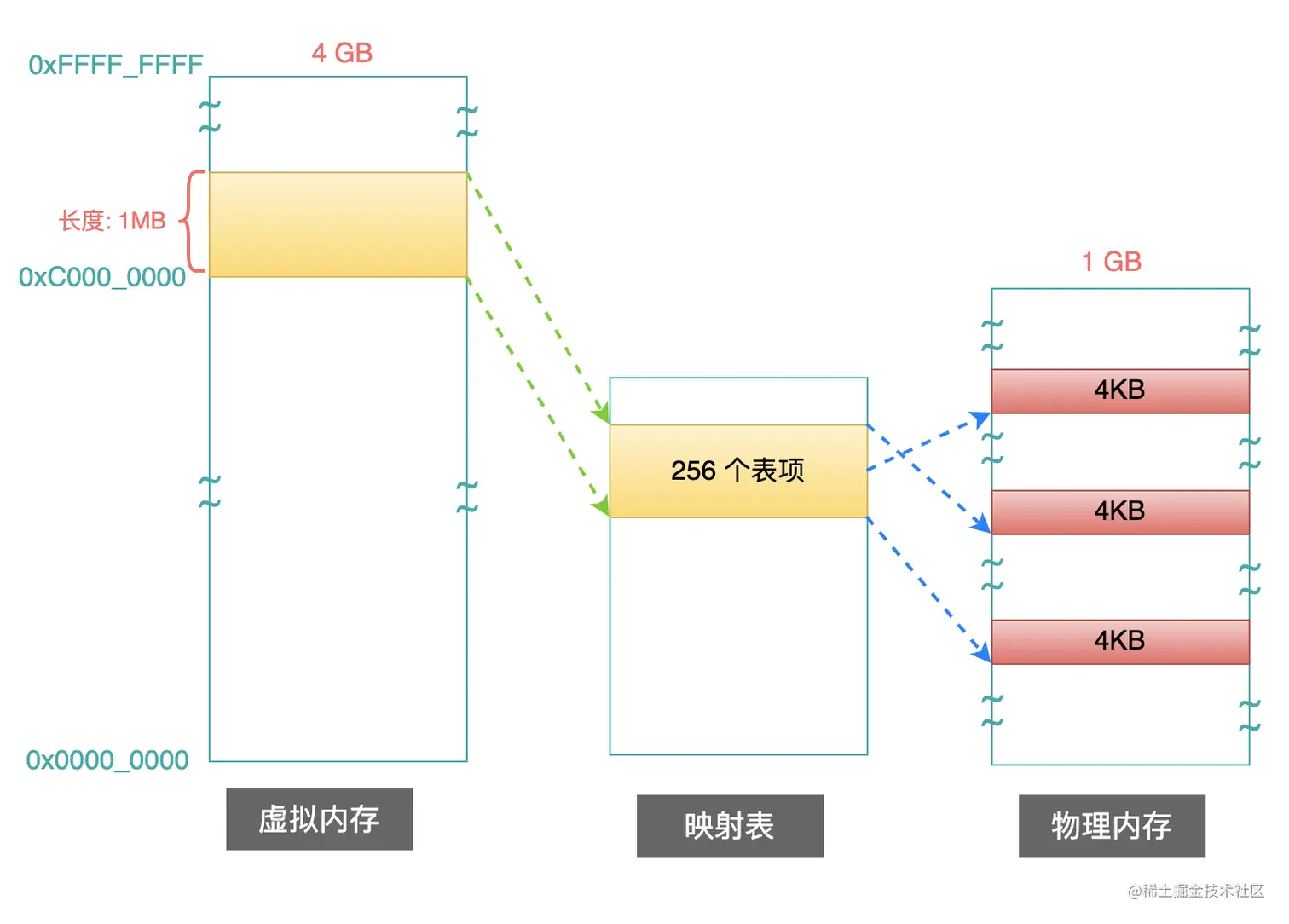 也就是说,映射表自己本身,就要占用 1024 个物理页(4MB / 4KB)。