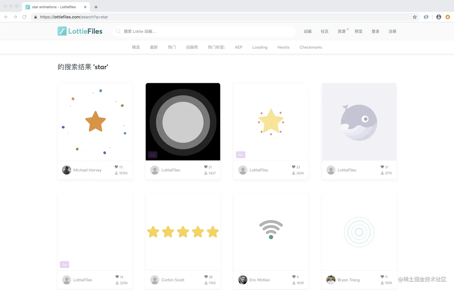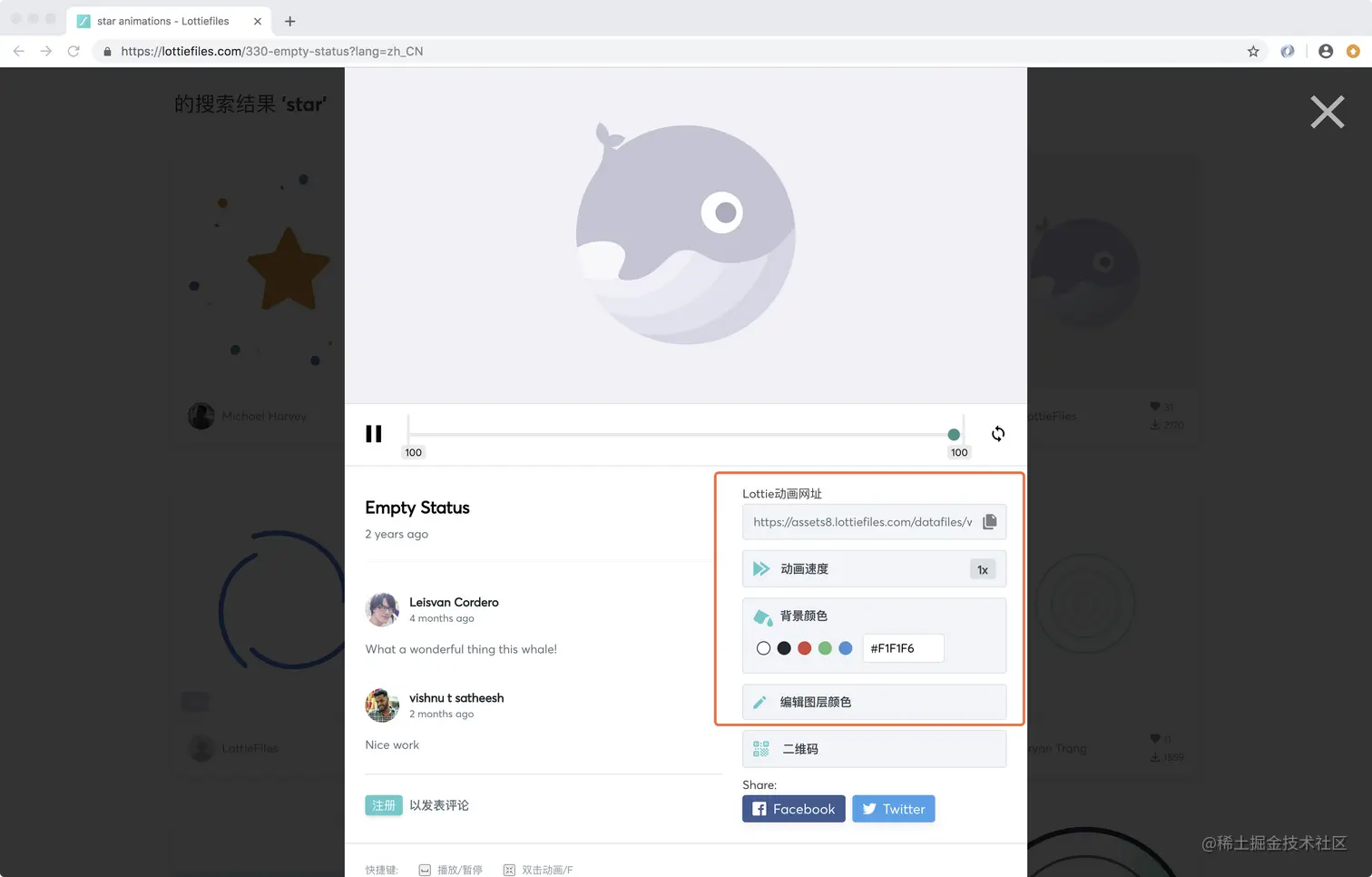 小菜首先在 lottiefiles 中下载了两个酷炫的动画 json,我们也可以选择合适的动画进行编辑调整;跟原生一样,可以随心设计,当然这项重任还是要交给视觉设计的小姐姐比较好;