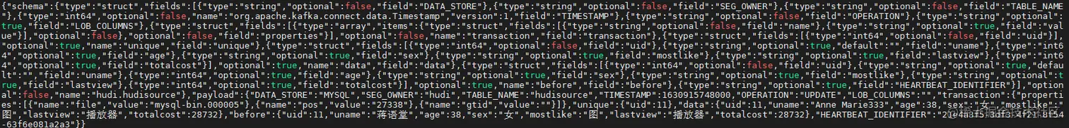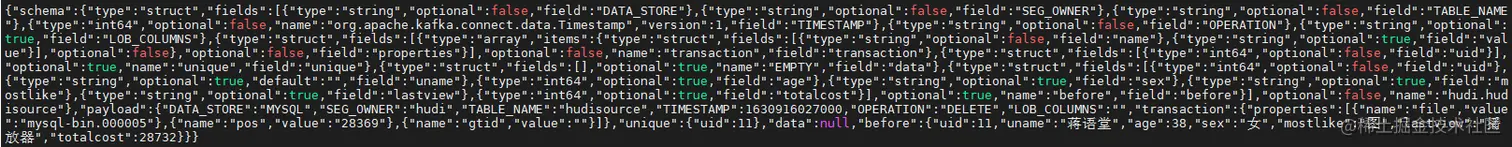 对应kafka消息体: