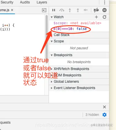 这种情况一般是你已经知道bug是什么了,但是不知道什么条件触发的,比如往后台发送数据,莫名其妙传了undefined或者NaN,目前还不知道这两个货是咋来的,无法复现bug,这个时候就用条件断点非常好用。