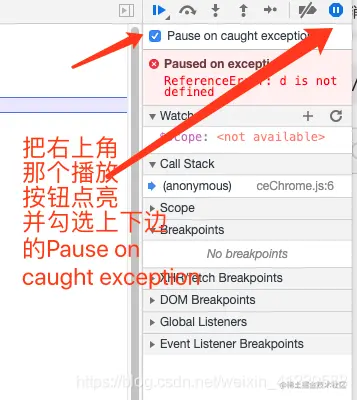 这个时候在抛出错误时自动断点。这样就可以查看上下文的错误与堆栈
