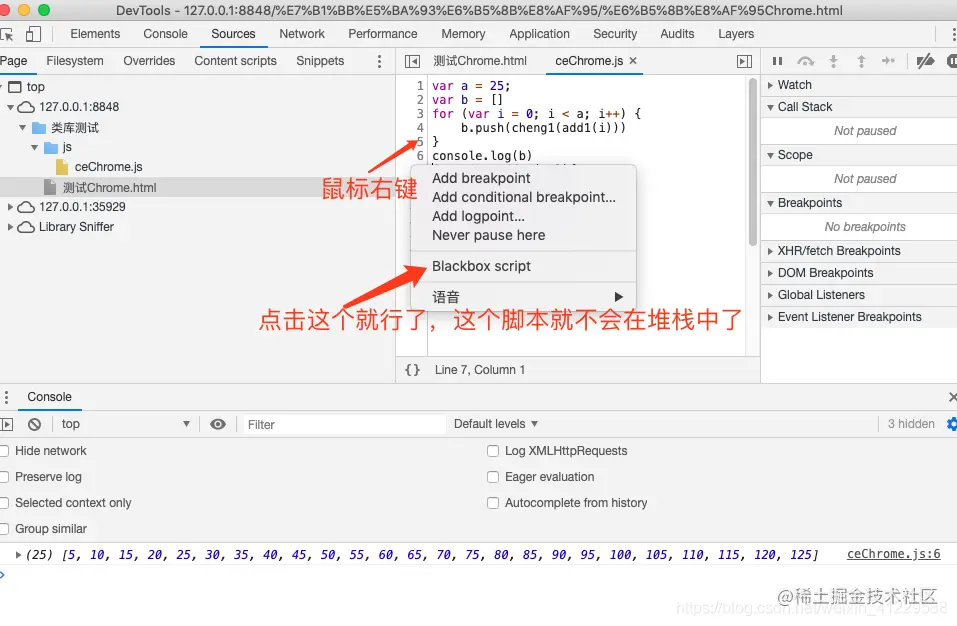 右键单击 Sources 选项卡中的 JS 脚本,然后单击“Blackbox Script”