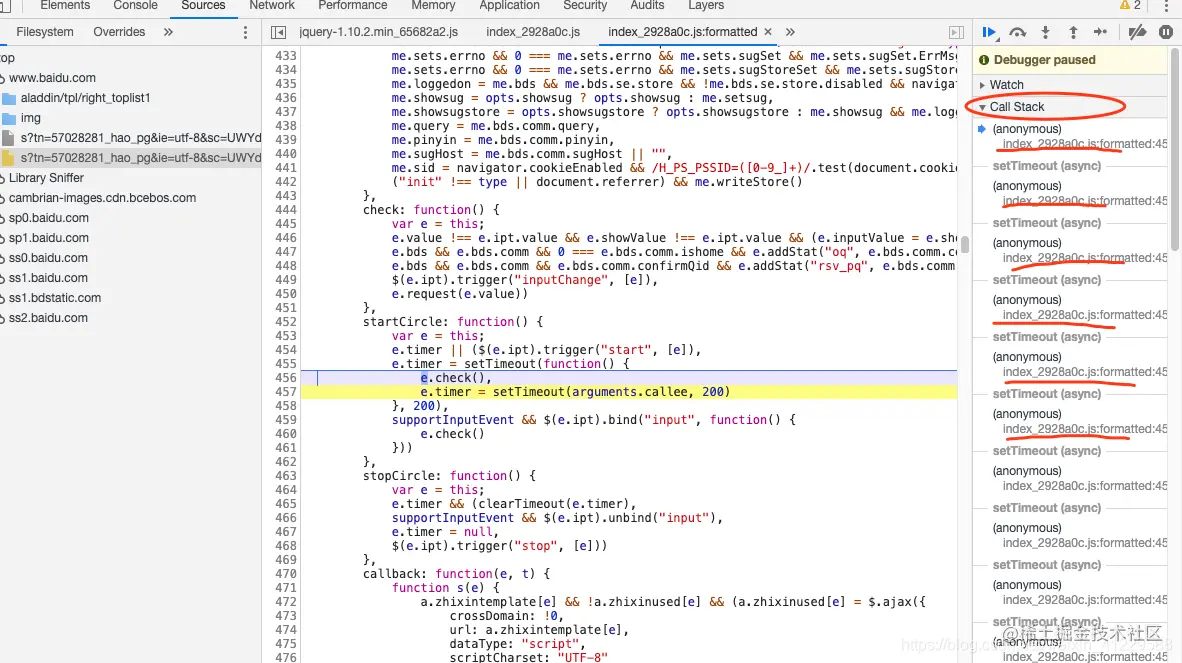 调试工具中有Call Stack调用堆栈,调用是按照调用顺序排列,可以点击看每一步的调用