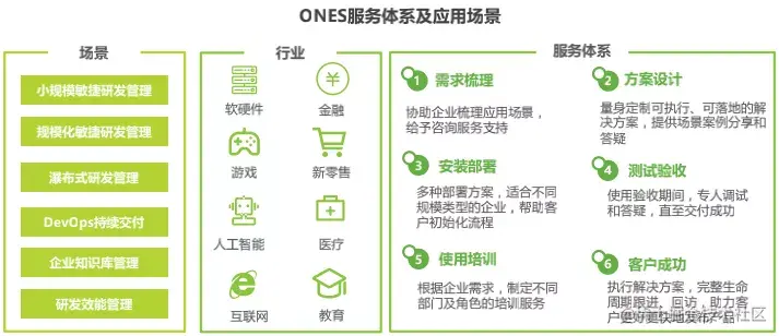 在该报告中,艾瑞咨询还分析了 ONES 的产品布局及解决方案、服务体系及应用场景。