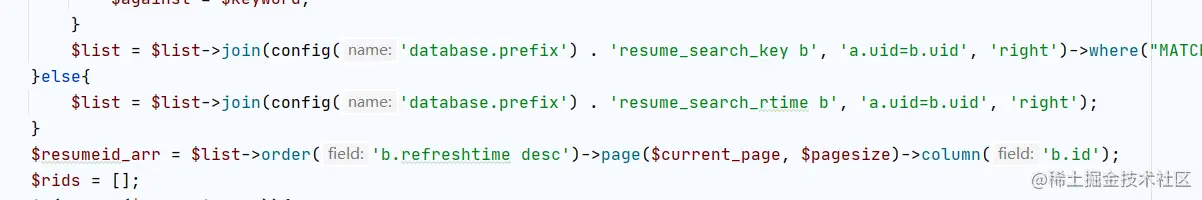 先join 里一个数据表,然后添加排序,并指定分页后,调用 column() 方法。