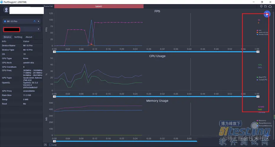 因为perfdog的随用随插,随走随拔,所以这个软件在手机中占用很小的cpu,因此对于数据的准确性也就更高,整个测试过程中几乎感觉不到测试工具对手机性能的影响,测试数据精确。