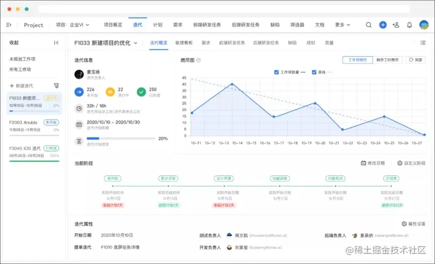 对照当前迭代的**「敏捷看板」和「燃尽图」等可视化视图,团队能够直观地理清迭代的关键时间节点以及信息**,并结合迭代中沉淀的日志、团队文档等,追溯迭代情况。