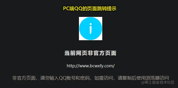PC端QQ的跳转拦截页面