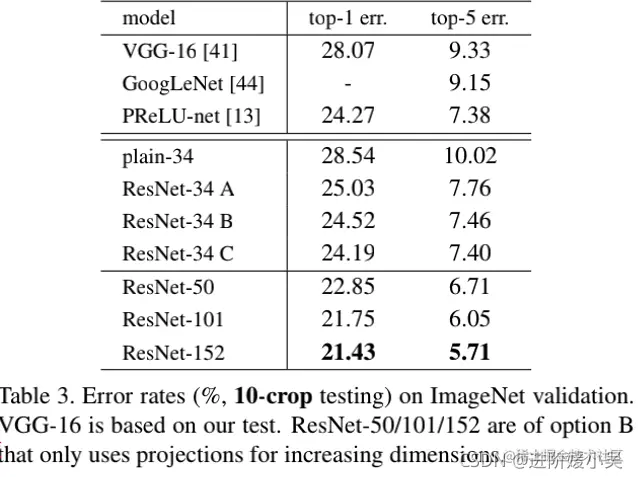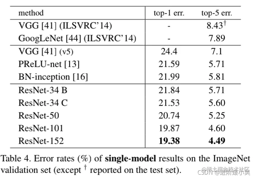 ImageNet验证集上的single-model结果的错误率(%)(测试集上的报告除外)。