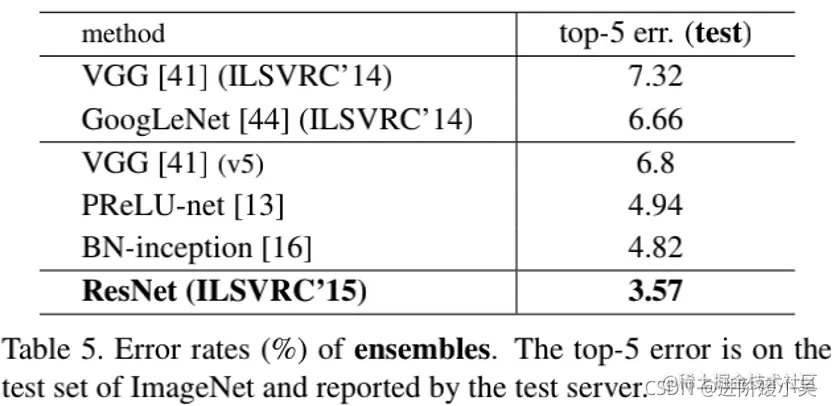 集合的错误率 (%)。top-5 错误在 ImageNet 的测试集上,由测试服务器报告。