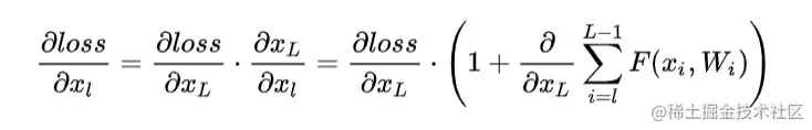 式子的第一个因子表示的损失函数到达 L 的梯度,小括号中的1表明短路机制可以无损地传播梯度,而另外一项残差梯度则需要经过带有weights的层,梯度不是直接传递过来的。残差梯度不会那么巧全为-1,而且就算其比较小,有1的存在也不会导致梯度消失。所以残差学习会更容易。