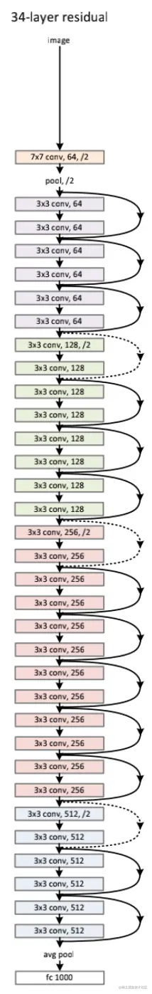 ResNet-34层网络结构