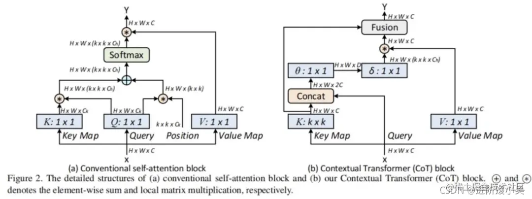 Transformer中的MHSA和BoTNet中的MHSA的区别: