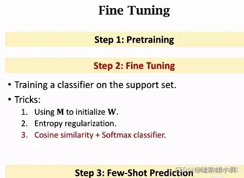 使用元学习的特征表示能够提升少样本学习的效果,作者归为两种不同的机制: (1)固定特征提取模块的参数,只更新(微调)最后的分类层(Classification Layer)参数。在这种机制下,类别数据点在特征空间中会更加聚集,那么在微调时,分类边界对于提供的样本会没那么敏感。 (2)在模型参数空间寻找最优点作为基础模型,该最优点接近大部分特定任务(Task-specific)模型参数的最优点,那么在面对新的特定任务时,能够通过几步的梯度计算,将基础模型更新为适用于新任务的特定模型。 后续会持续更新关于小样本学习的文章。