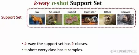 k-way是support set 里有多少个类别;n-shot是每个类别有多少个例子。