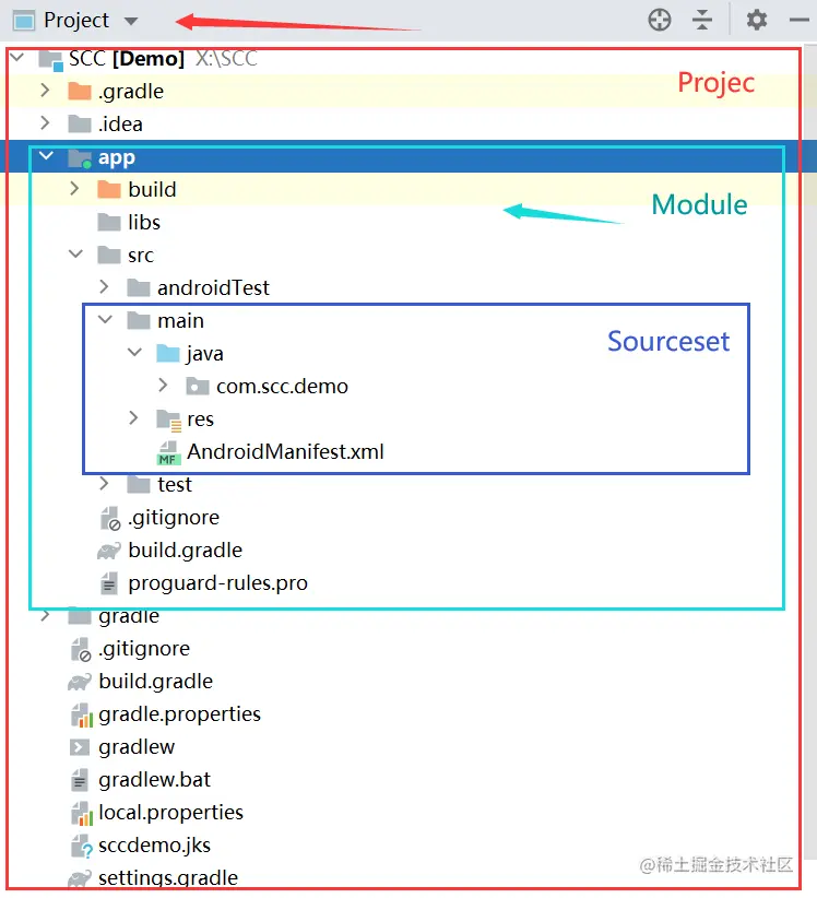 开始新项目时,Android Studio 会自动为您创建其中的部分文件,并为其填充合理的默认值。所以不管一个完整的 Android 项目可能包含多个 module,而从宏观上看每一个 module 中的内容可以分为 2 部分: