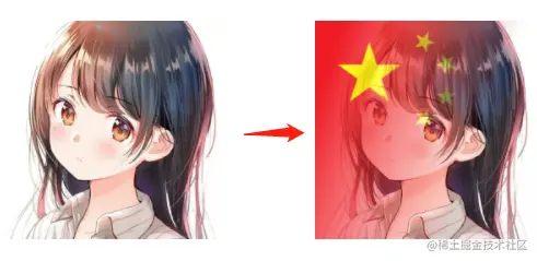 有人认为是改变其中一张图的透明度,实际上不是的。仔细观察合成后的头像,最左边的基本上只能看到红旗看不到原本的头像内容,而最右边基本只能看到头像而不再显示红旗的红色背景。