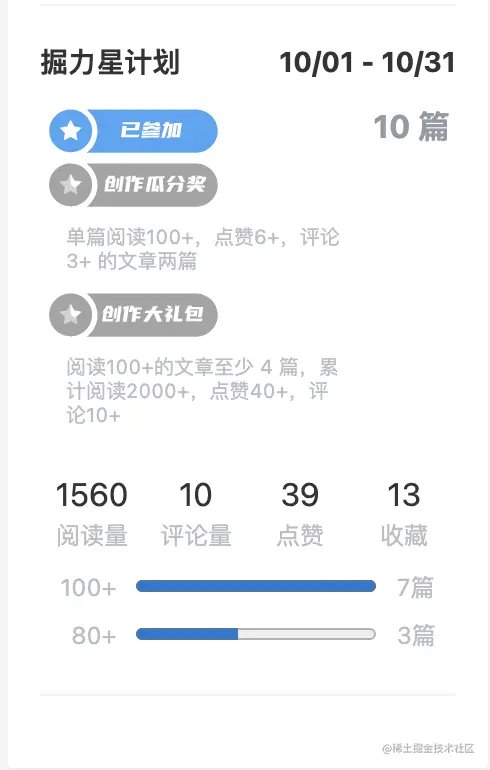 掘金每个月都有一些有意思的活动,但是目前没有进度追踪和数据统计,有点不方便。