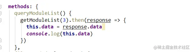 在 method 里实现方法queryModuleList,在里面完成接口的调用。