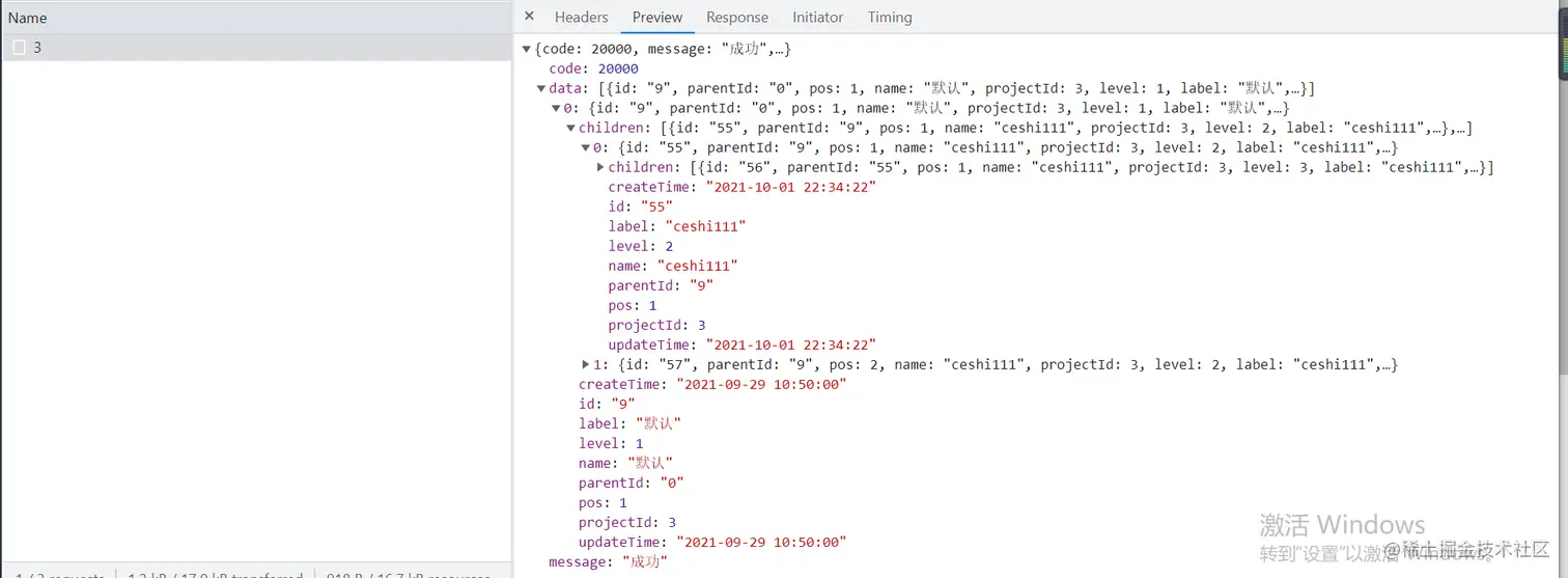 再选择项目3,之前调试用的项目id,里面有层级数据。