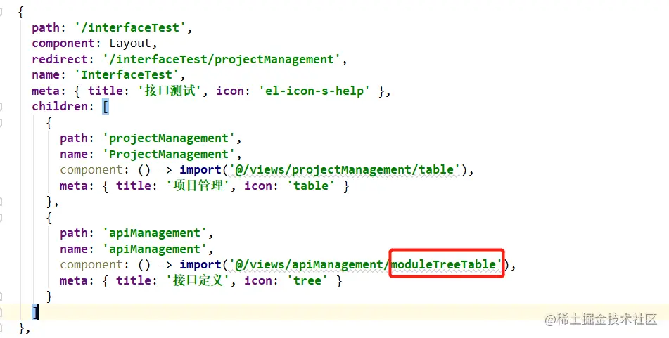 我把vue文件名改了下,之前叫index.vue,现在换成了src/views/apiManagement/moduleTreeTable.vue。