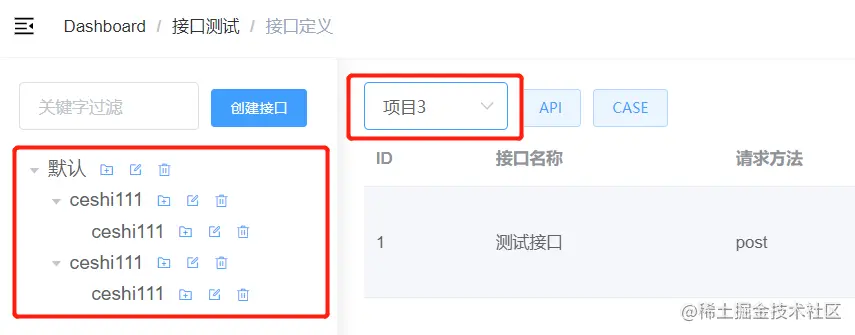 按正常来说,我到了这个接口定义列表页,需要选择好一个项目,然后列表展示这个项目下的模块树和接口列表。