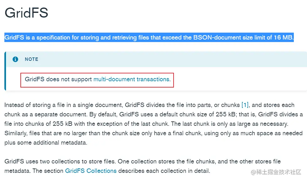 用于存储和检索超过BSON-document大小限制 (16mb) 就会使用到 GridFS 数据类型