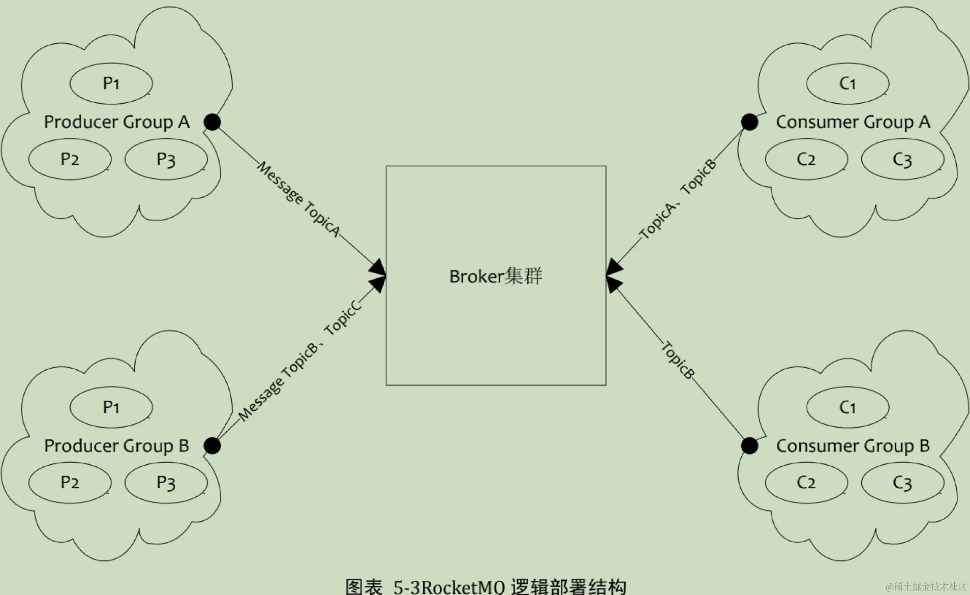 用来表示一个发送消息应用,一个Producer group 下包含多个Producer