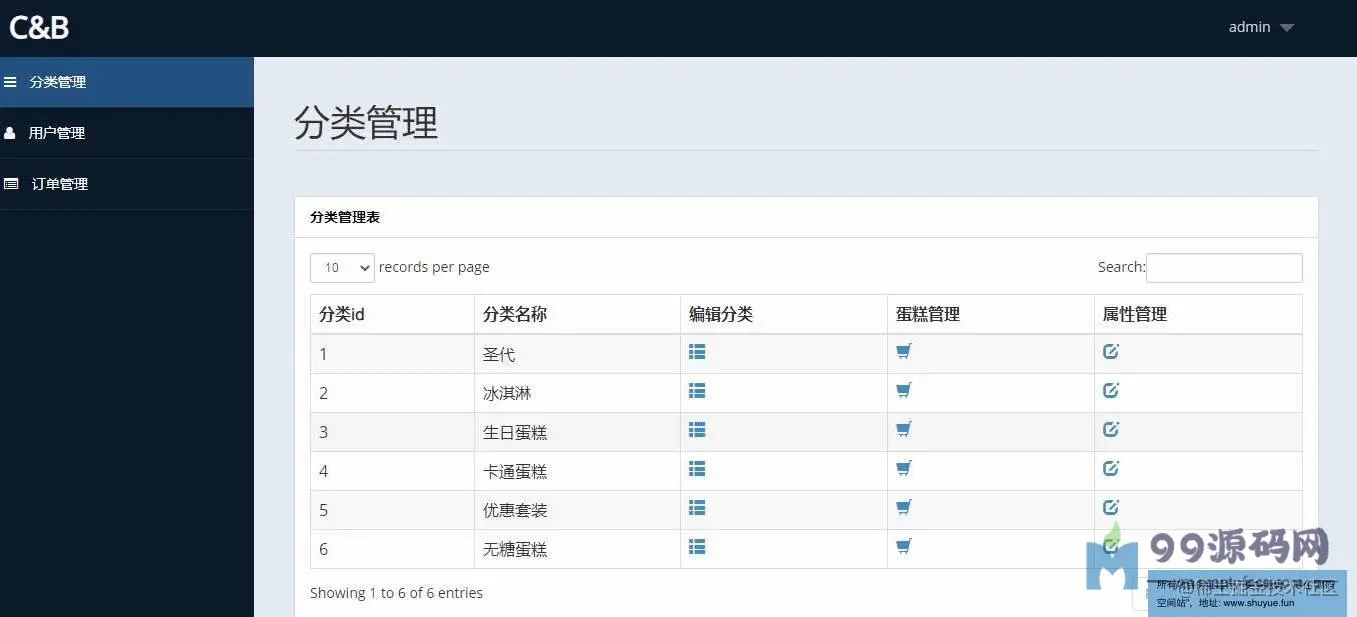 管理员登录,蛋糕分类管理,蛋糕管理,用户管理,订单管理等功用。
