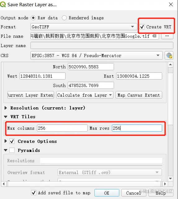 选中vrt,选择切割影像的大小,比如我们获得的每一张像片的大小为256256: