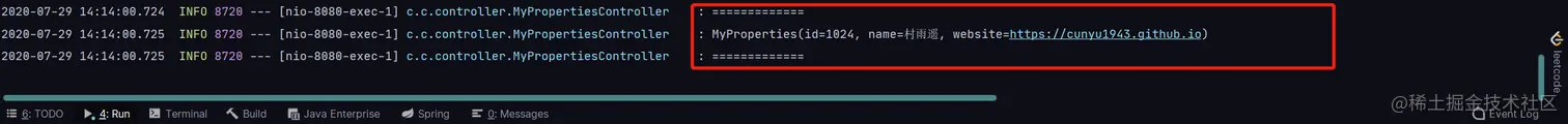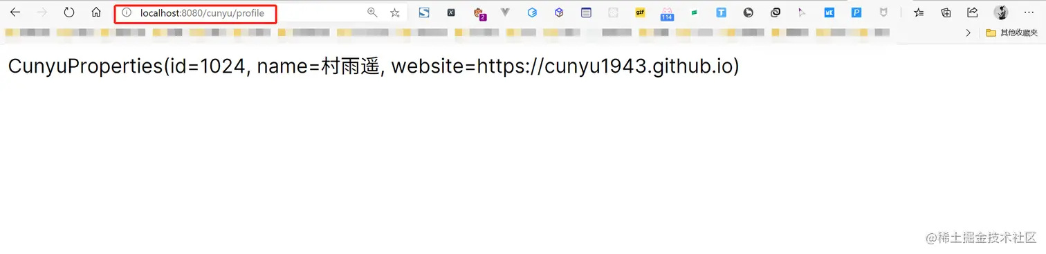 http://localhost:8080/my/profile,同时观察控制台,显示如下内容则说明属性注入成功;