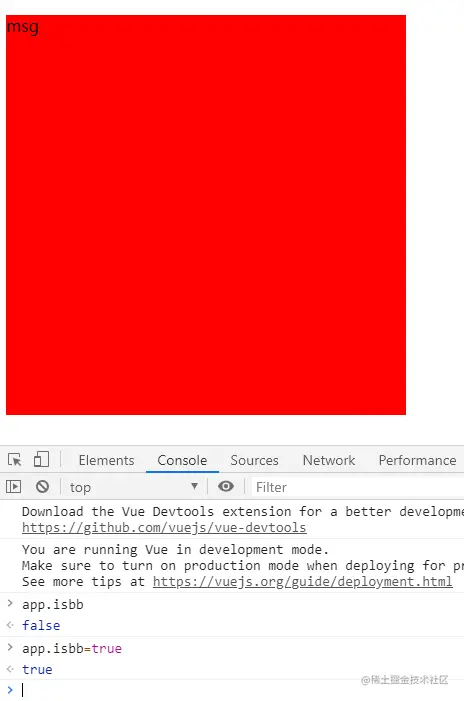 div宽400px;背景颜色为红色。当我们修改isbb属性值后,div的高度也变为400px;