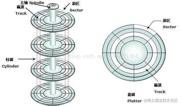 关于磁盘的物理结构,如下图所示:图片来源:tech.meituan.com/2017/05/19/…