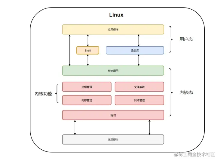 如上图所示,系统调用将linux分为用户态和内核态。